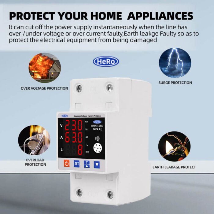 - 🛡️ 63A Earth Leakage & Over/Under Voltage Protector with kWh Meter