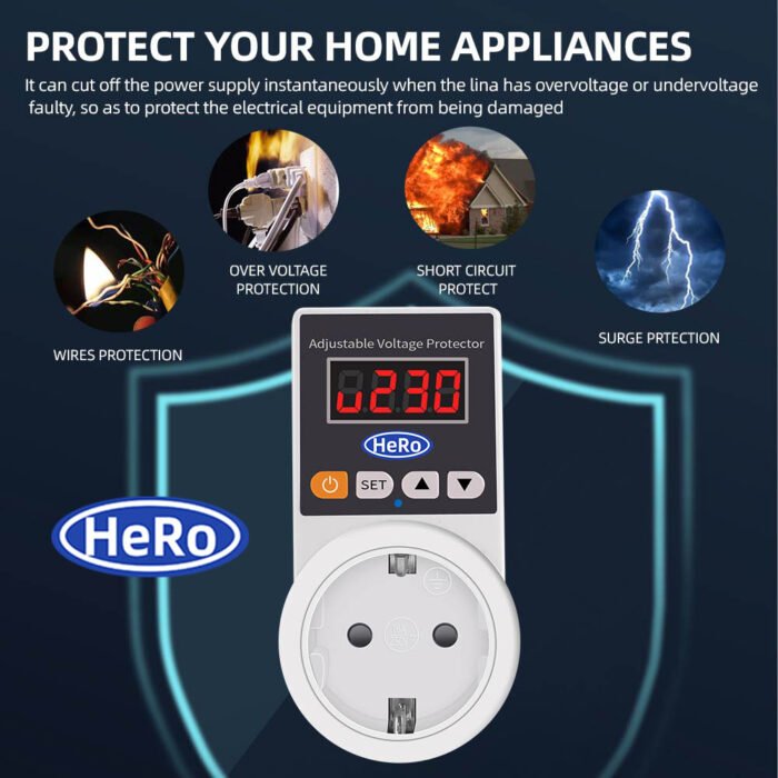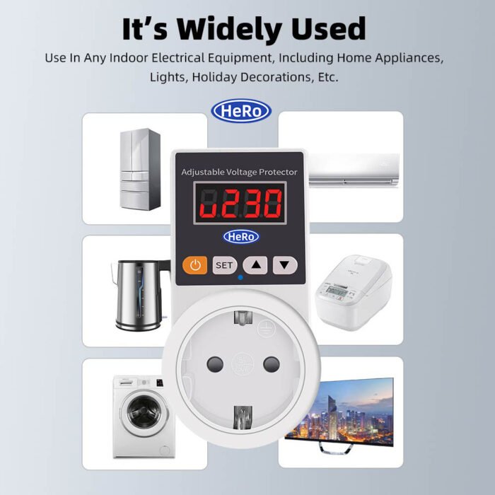- ⚡ Over-voltage Protection: Adjustable range 230–300V (Default: 260V). Automatically cuts off power during voltage surges to protect connected devices.
