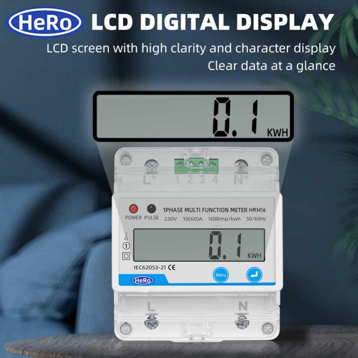Din Rail Electricity Digital Power Energy Meter – Single Phase 1P 2 Wire, 230V