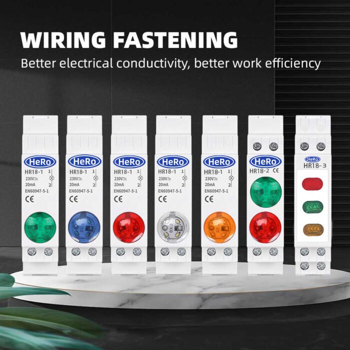 Din Rail Mount LED Signal Lamp 18mm – AC/DC 220V-230V Indicator Light (Red, Green, Blue, Orange, White)