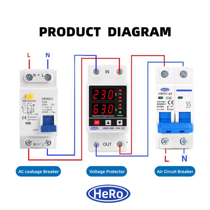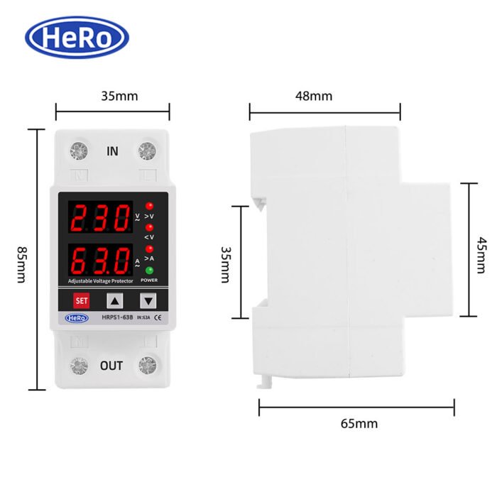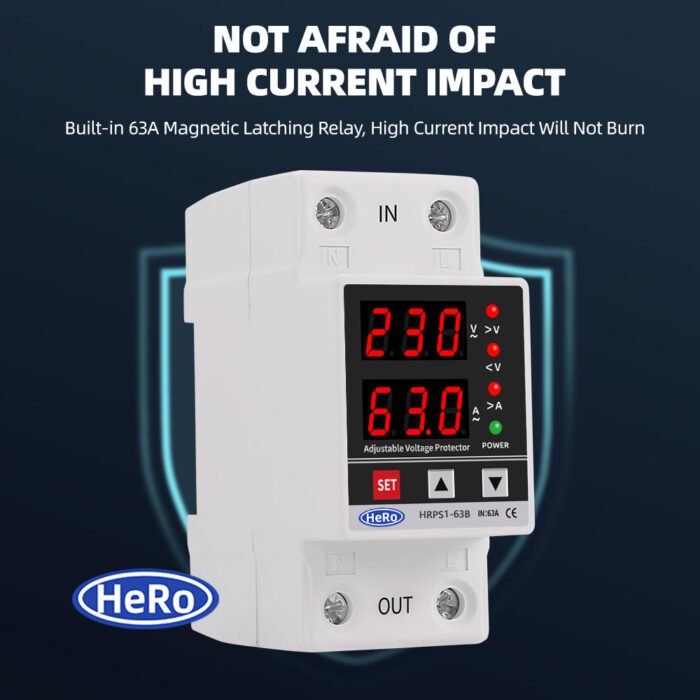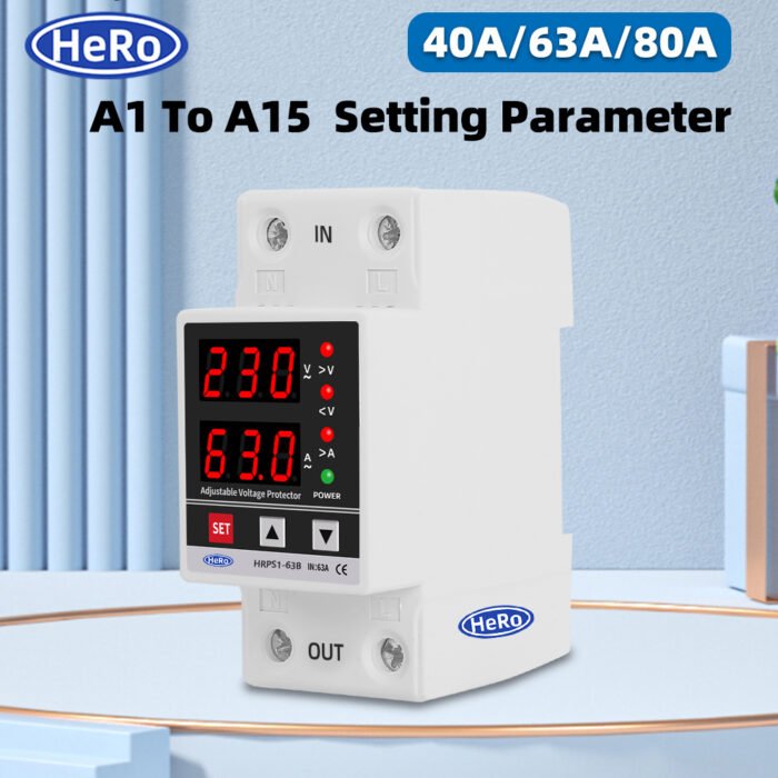 Be the first to review “Dual Display 40A 63A 230V Din Rail Adjustable digital Over Under Voltage Relay Surge Protector Limit Over Current Protection”