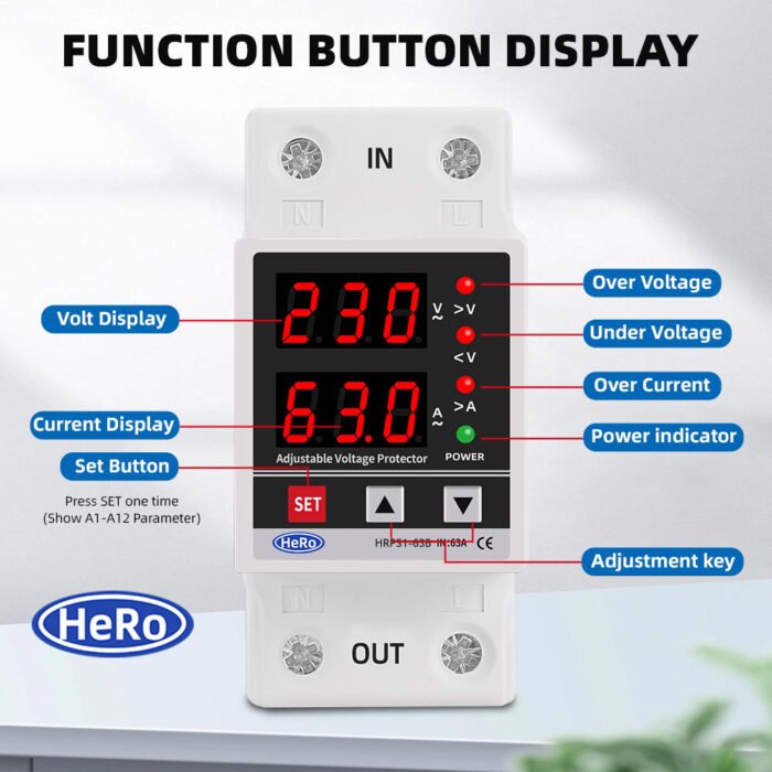 • 🛡️ Dual Display Adjustable Over/Under Voltage & Current Relay Protector
