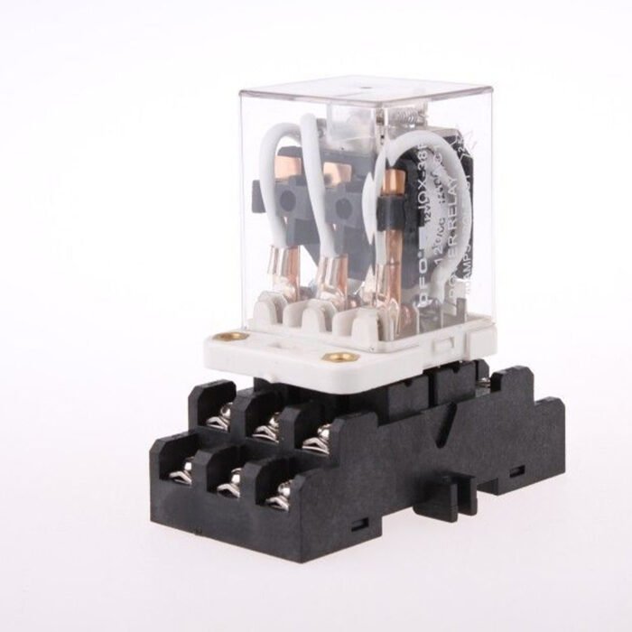 The JQX-38F Power Relay is a high-performance, heavy-duty relay designed for reliable switching in demanding applications. With a contact capacity of 40A and compatibility with both DC and AC circuits, this relay is ideal for industrial automation, automotive systems, and high-power control applications. The included socket ensures easy installation and secure connections, making it a versatile choice for engineers, hobbyists, and professionals alike.