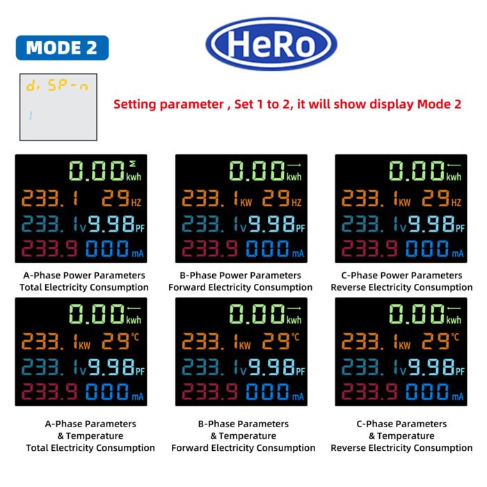 - ⚖️ Three-Phase Current Imbalance Alarm: 10-100% (Adjustable, Default: 20%)